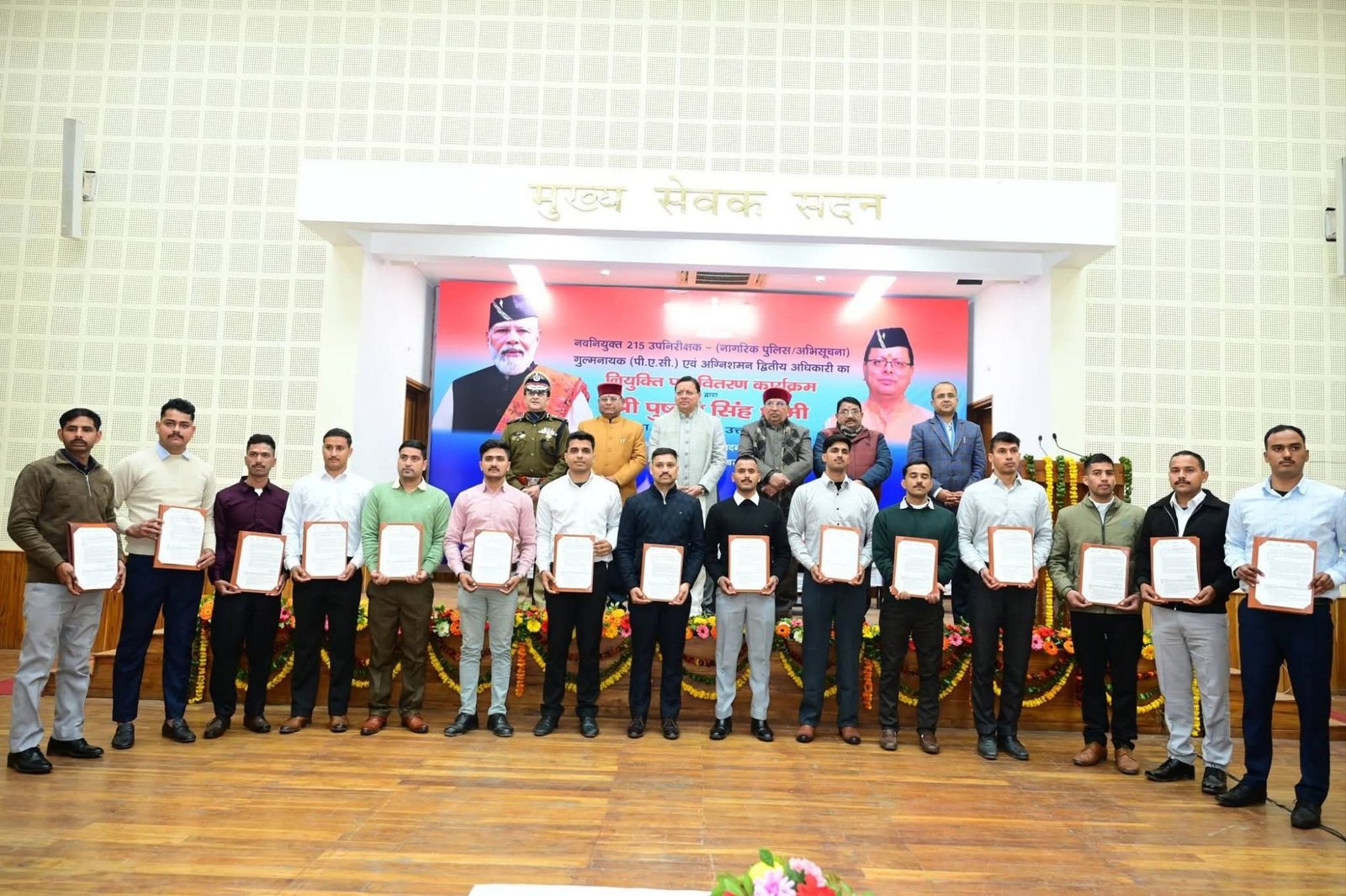 मुख्य सेवक सदन में कुल 215 कार्मिकों व अधिकारियों जिसमें 104 उपनिरीक्षक (नागरिक पुलिस/अभिसूचना), 88 गुल्मनायक (पी०एस०सी०) एवं 23 अग्निशमन द्वितीय अधिकारियों को नियुक्ति पत्र प्रदान किए। नवनियुक्त समस्त कार्मिकों को हार्दिक बधाई एवं नवीन दायित्वों के सफल निर्वहन हेतु शुभकामनाएं।