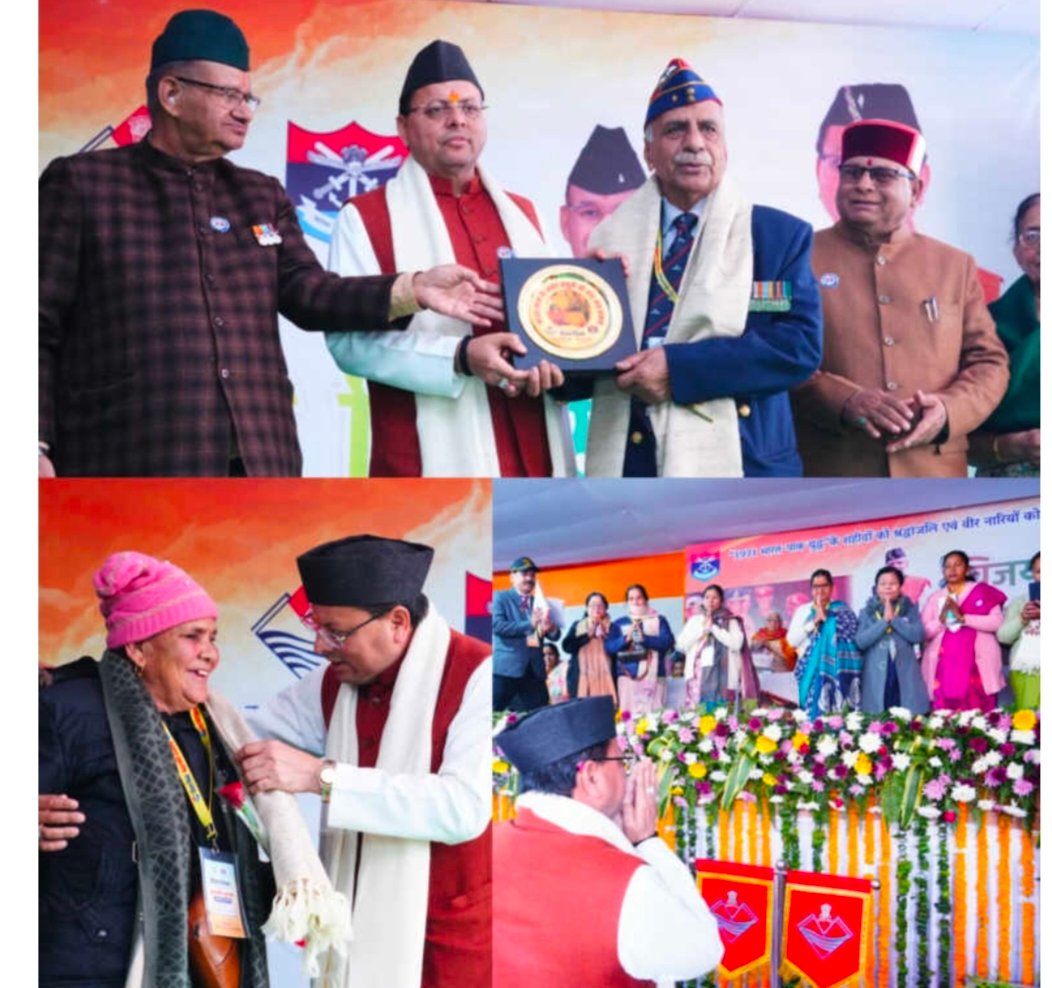 मुख्यमंत्री पुष्कर सिंह धामी ने विजय दिवस की शुभकामनाएं देते हुए सभी वीर बलिदानियों को समस्त प्रदेशवासियों की ओर से श्रद्धांजलि अर्पित की। मुख्यमंत्री ने कहा कि हमारे वीर जवानों ने अदम्य साहस और सर्वोच्च बलिदान से 1971 के युद्ध में राष्ट्र की अखंडता और स्वाभिमान की रक्षा की। आज भारतीय सेना के शौर्य, त्याग और अटूट राष्ट्रनिष्ठा की गौरवगाथा को स्मरण करने का दिन है, जो हमारे इतिहास के पन्नों पर स्वर्णाक्षरों में अंकित है।