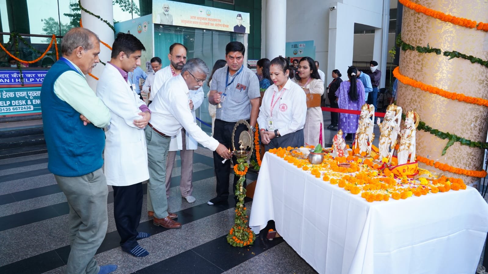 मंगलवार को श्री महंत इन्दिरेश अस्पताल के प्रांगण में दीपोत्सव का शुभारंभ श्री गुरु राम राय इंस्टीट्यूट आॅफ मेडिकल एण्ड हैल्थ साइंसेज़ के प्राचार्य डाॅ अशोक नायक, श्री महंत इन्दिरेश अस्पताल के मुख्य चिकित्सा अधीक्षक डाॅ उत्कर्ष शर्मा, श्री दरबार साहिब के अधिकृत हस्ताक्षरी प्रबन्धक विजय नौटियाल, एसजीआरआर विश्वविद्यालय के समन्वयक डाॅ आर.पी.सिंह, चिकित्सा अधीक्षक डाॅ अजय पंडिता, चिकित्सा अधीक्षक डाॅ गौरव रतूड़ी व नर्सिंग अधीक्षक अनीस ने दीप प्रज्जवलित कर किया। अस्पताल परिसर में एसजीआरआर स्कूल आॅफ नर्सिंग की छात्राओं द्वारा बनाई गई मनमोहक रंगोली सेल्फी प्वाइंट का आकर्षक केन्द्र रही। अस्पताल स्टाफ लक्ष्मी नैनवाल अराध्या एवम् अनन्या ने गढ़वाली गीतों पर मनमोहक नृत्य की प्रस्तुति दी। बच्चों की प्रस्तुति का दर्शकों ने तालियों के साथ समर्थन किया।